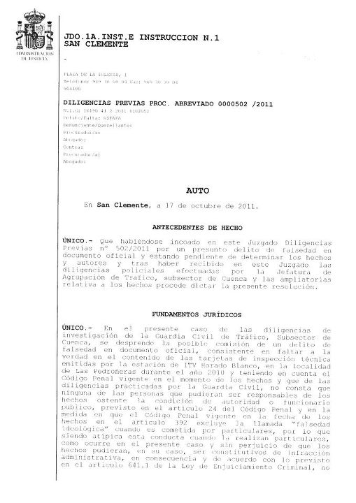 Diligencias previas 502/2011 Juzgado de Primera Instancia e Instrucción número 1 de San Clemente (Cuenca), haber si algun manitas con esto puede conseguir la sentencia chin chin